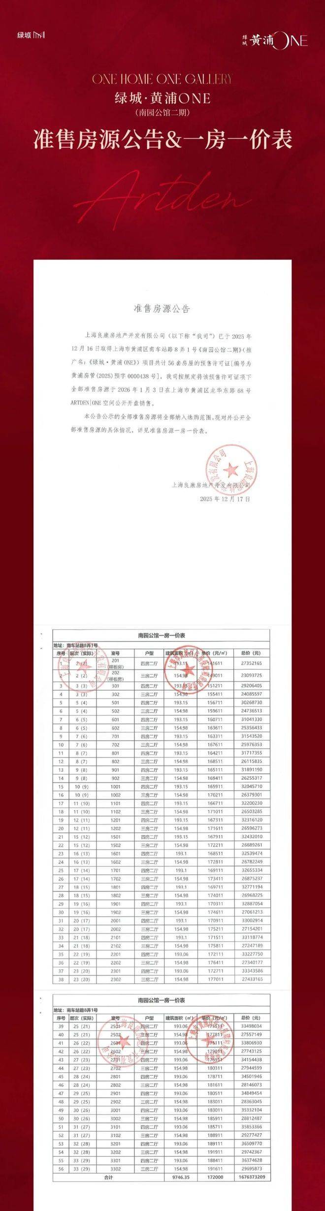 一房一价表: