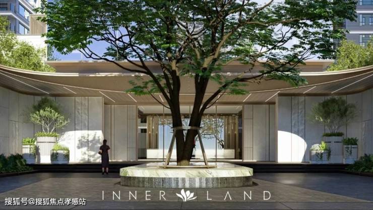 从高定酒店式入口进入,便是约120米进深的自然隐萃归家景观轴,串联“四重萃隐景观”、“四幕花园谧境”。