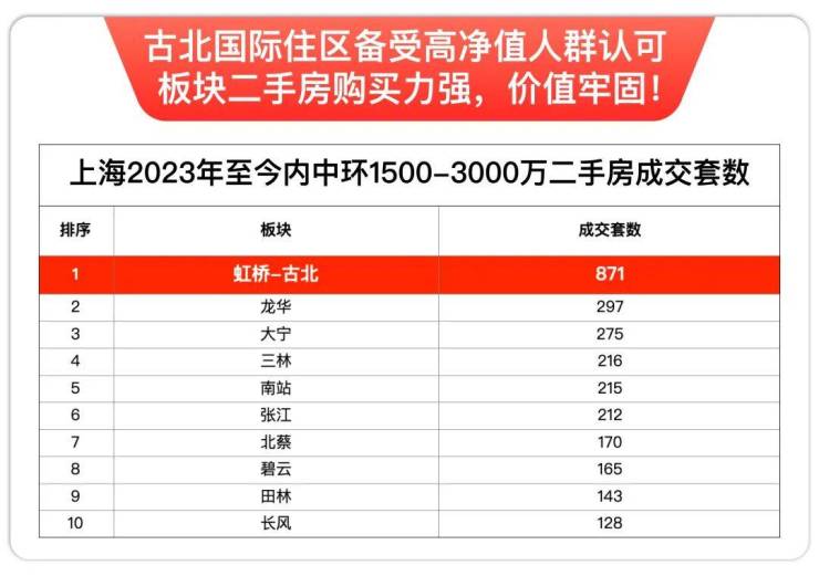 值得一提,小胖君统计了2023年至今内中环1500-3000万二手房成交套数,你可以信赖虹桥—古北的购买力,愿意买进这一带的高净值人群源源不断。