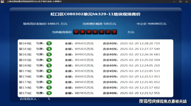 2025年2月,今年第一批次土拍中,经过184轮竞价,金茂&庆隆联合体以总价896435万元竞得虹口C080302单元hk329-11地块,溢价率38.2%,折合楼板价117474元/㎡,装修标准不小于4000元/㎡。