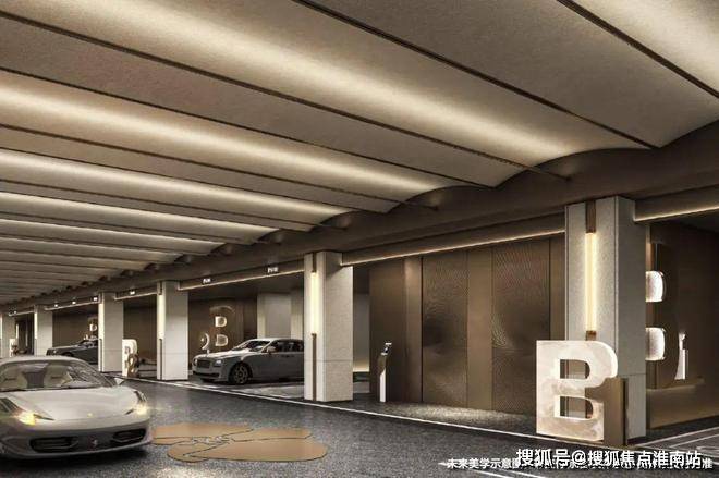 精装车库,金茂这次也拿出了流光穹顶的天幕和定制化的归家门头,甚至地面都采用了石材来增加奢华感。