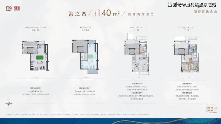 另外一方面,以滨海度假酒店的美学笔触,绘制“一心双轴双庭四境”海上森屿墅区。