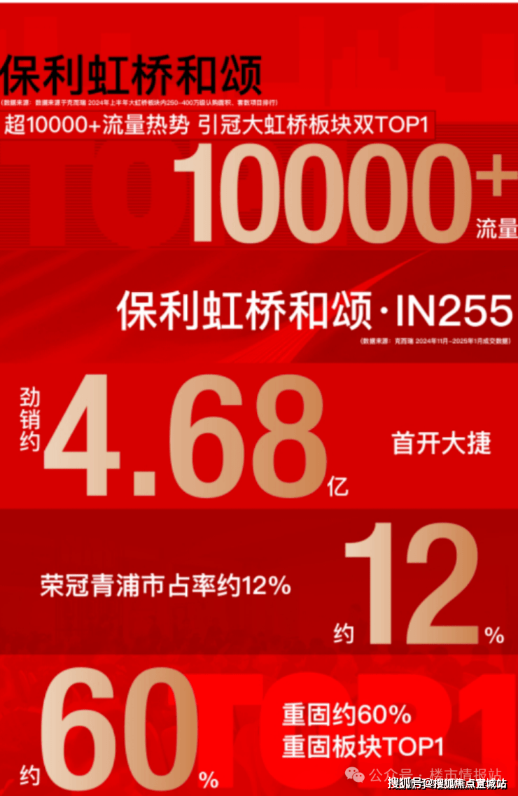 面对市场预期升温窗口期,保利虹桥和颂·IN255以300万级精奢三房、500万级改善四房迭代升级产品,强势锚定板块进阶需求,首开即强势斩获4.68亿元业绩,更以单盘青浦约12%、重固板块约60%市占率,焕新激活板块价值跃迁。(数据来源:克而瑞2024年11月-2025年1月成交数据)
