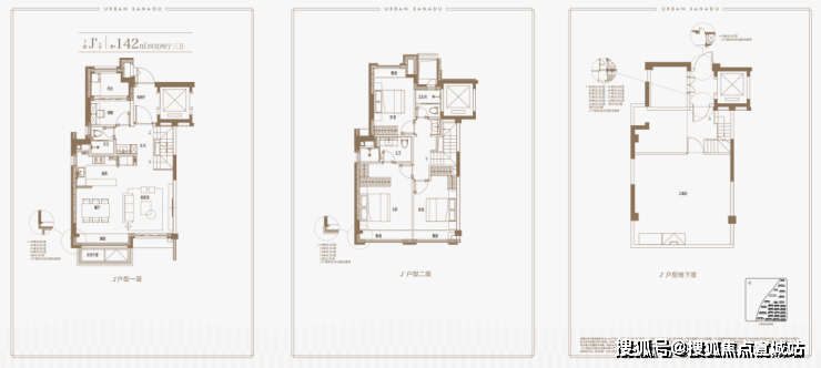 建面约139㎡上叠户型,三层是会客区,四层是居住区,阳台+露台+多个飘窗设计,附加空间非常大,在别墅类产品中实属罕见!