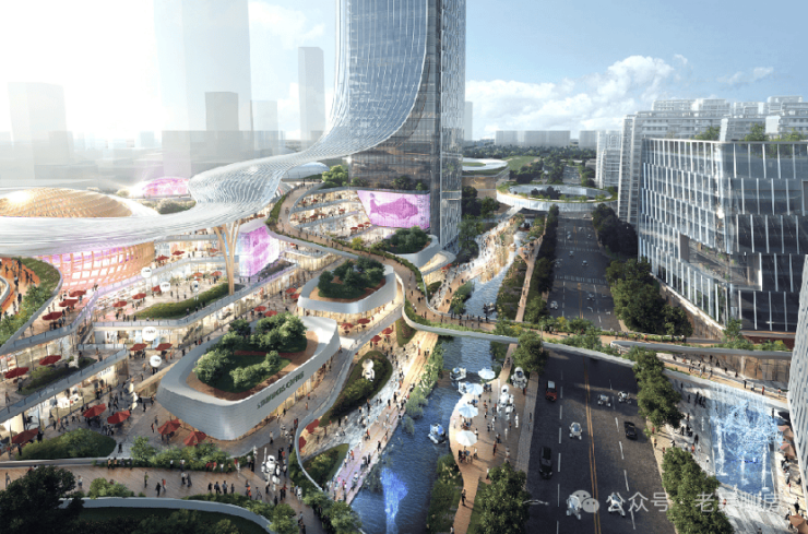 从空中俯瞰,跌水水景、亲水平台、色叶树阵等多重景观交融,展开一幅无与伦比的山水画卷。