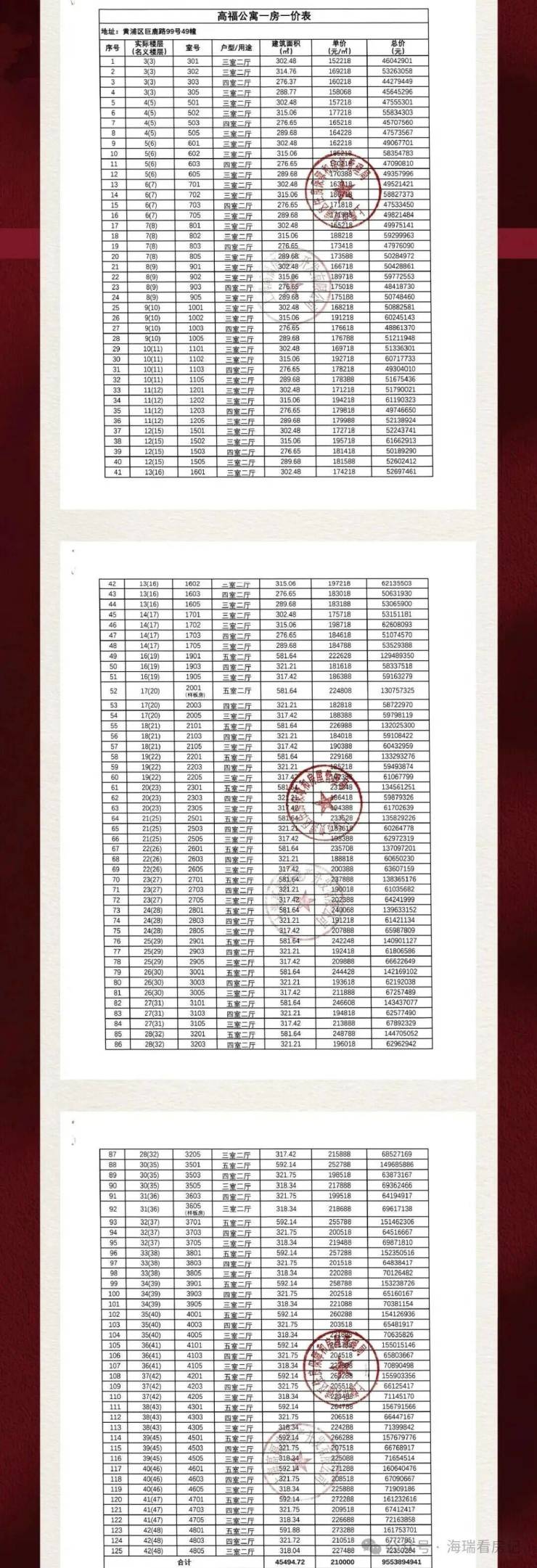 一房一价表