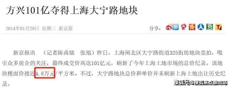 中建玖上琅宸预约热线☎:400-8080-420✅✅2014年1月土拍,上海闸北大宁地块出让,最终被金茂拿下,楼板价接近4.8万一平,甚至超越了周边的二手房价。