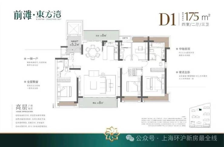 如果有进阶改善置业需求的客户,可以选择建面约140/175㎡4房2厅3卫!