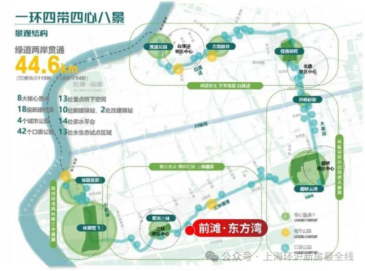 世博水环将与黄浦江滨江步道形成“滨水+滨江”的空间闭环,构建“一环四心四带八景”景观结构,构建集生态、文化、民生于一体的城市滨水生活圈。