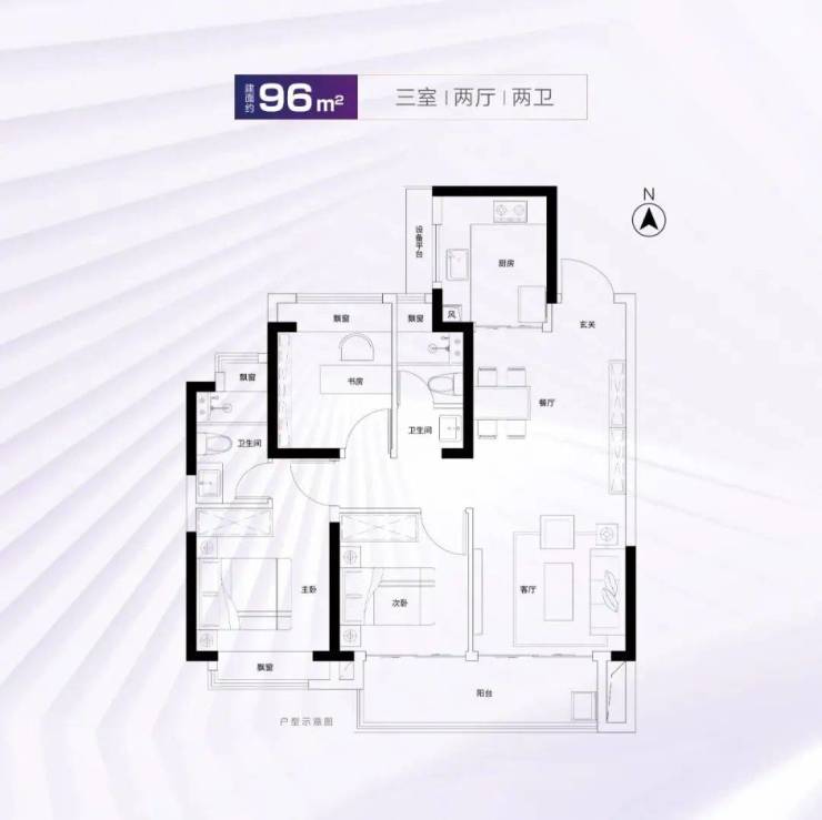 建面约96m²3房2厅2卫