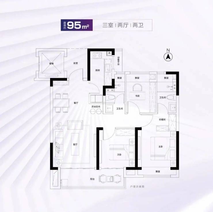 建面约95m²3房2厅2卫
