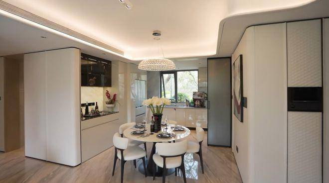 中环铂樾客餐厅一体化设计,远超同类面积标准的大尺度餐厅,不仅放得下圆形大餐桌,旁边还配备了餐边柜!剩余空间依然阔绰从容!