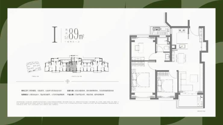 1、全部南向大面宽设计,保证最为出众的采光和视野需求;