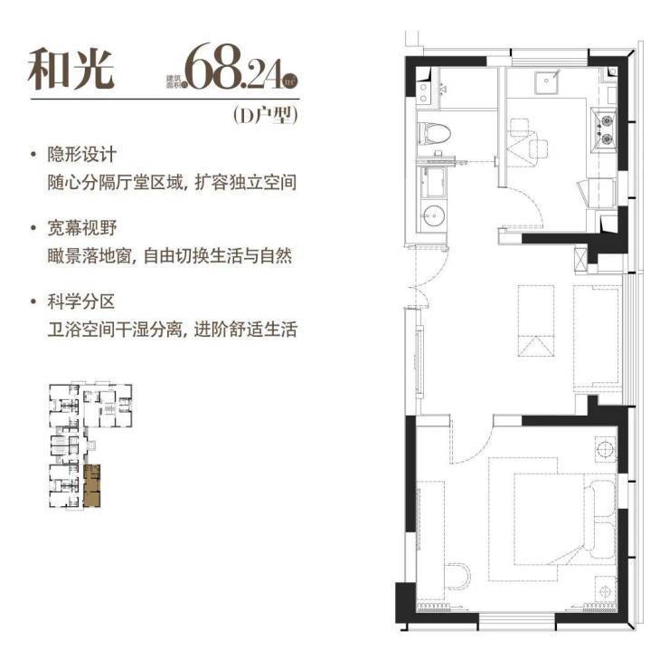 D|和光|建面约68.24m²|一室一厅一厨一卫