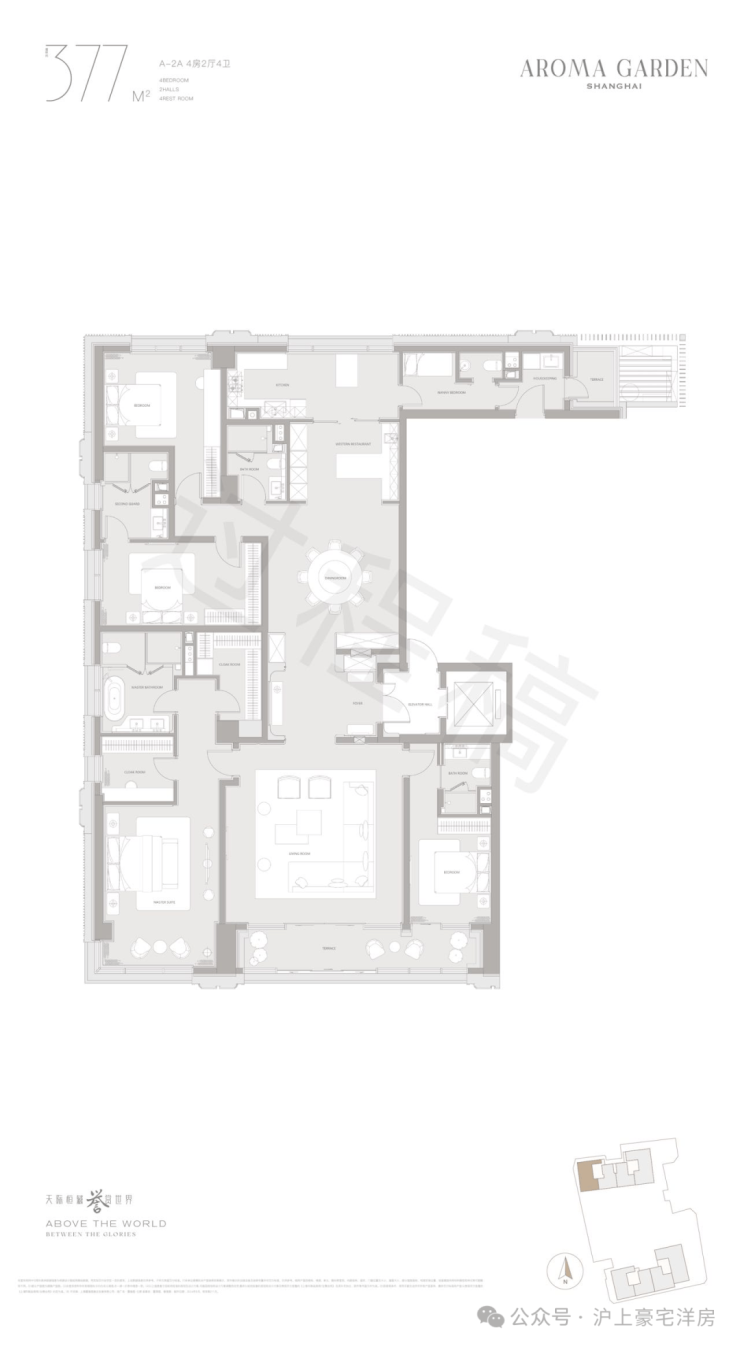 高层户型规划主力面积在260-882㎡区间。豪华主卧套房设计(部分户型为全套房设计),逾百平方客餐厅一体+270度转角落地窗+超宽尺度花园阳台,臻选智能化家居系统及世界顶级精装品牌,赋予居家艺术与智慧生活全新表达。