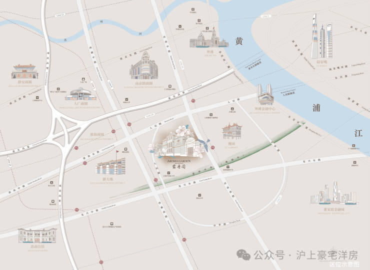 毗邻南京东路商圈、新天地、来福士广场等繁华商业中心,周边还有豫园商城、城隍庙、福源商厦(城隍庙店)等商业地标及商场,可满足高端消费与日常生活所需。