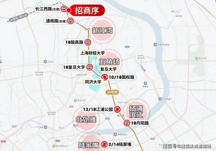 预计今年年底通车的18号线二期含金量太高了。未来从招商序所在的长江西路出发(在建)出发,2站就是新江湾,4站财大,5站复旦,6站五角场,8站新华医院,11站杨浦滨江,12站陆家嘴滨江...并且,每站之间的距离很短,所以实际的通勤效率比想象中要更高。
