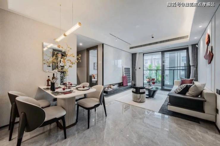 客餐厅的颜值超高,地砖、墙布都在交付标准里,整体风格更为统一,将好看+好用发挥到了极致!
