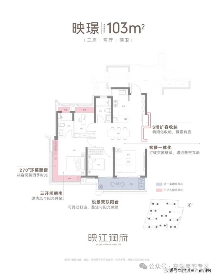 ②建面约103㎡3房2卫边套:品质改善的爆款户型,270°环幕飘窗!☑️☑️华润映江润府售楼处电话:400-8855-420☑️☑️
