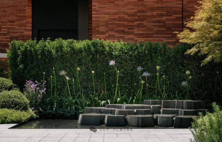 近百种名贵树种构建植物骨架,会所入口百年黄杨以苍劲树姿勾勒威仪、 50 年的铁冬青虬枝如盖,与丰沛草木共同铺陈四季有韵的景观底色。在此基础上,85%以上的长绿地被层让浓荫绿意成为社区四季常客;更依街巷宽窄定制种植层次,使植物高度与建筑进退、小品尺度形成默契咬合,如立体五线谱般弹奏出光影与草木的协奏。