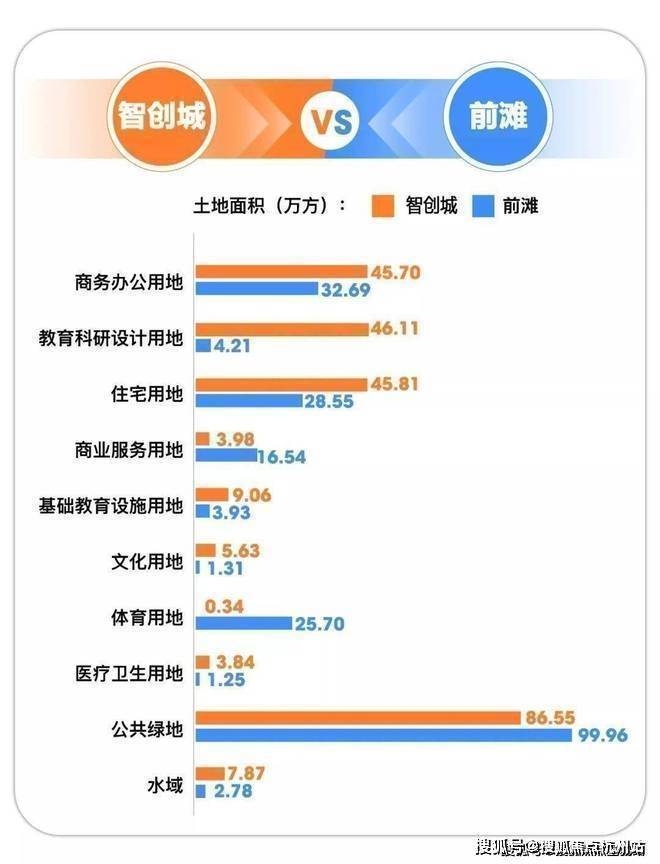 当然,很多人对这个体量不太有概念,我们以熟悉的前滩为标杆,来看一下智创城的整体配套体量,在上海占据怎样的位置: