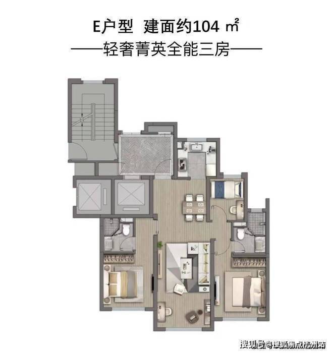 二,不管建面约95㎡2房还是约104㎡3房,都做了“双南套房”。