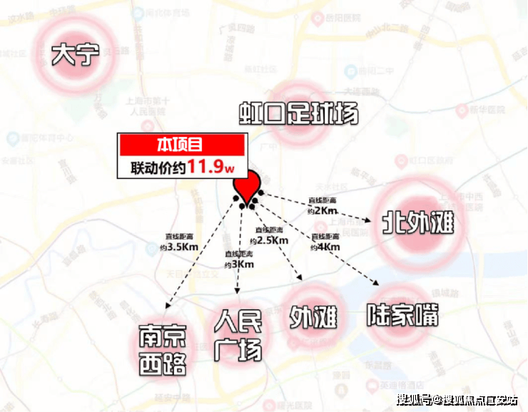 项目直线距离人民广场约3公里,直线距离外滩约2.5公里,直线距离南京西路约3.2公里,直线距离陆家嘴也仅约3公里,直线距离北外滩更是仅约2公里.同时背靠虹口龙之梦商圈和大宁商圈.
