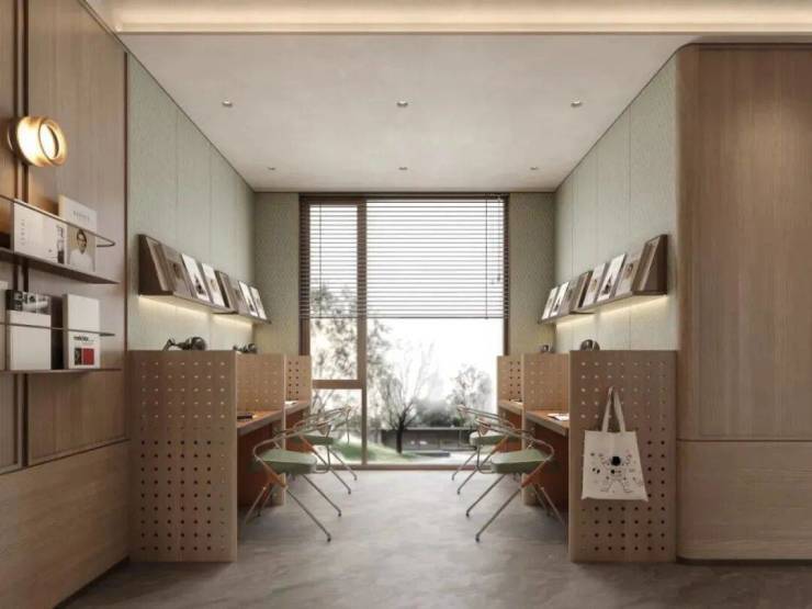 4#楼楼下的活力社交场,有氧健身、瑜伽室、品茶区、日落咖啡吧等功能空间。日落咖啡吧采用24小时开放模式,无论回家多晚,都有一盏灯为业主而留。