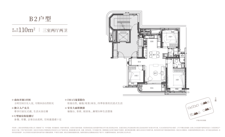 110㎡三房两厅两卫(横厅/竖厅两种户型可选),总价约634-836万