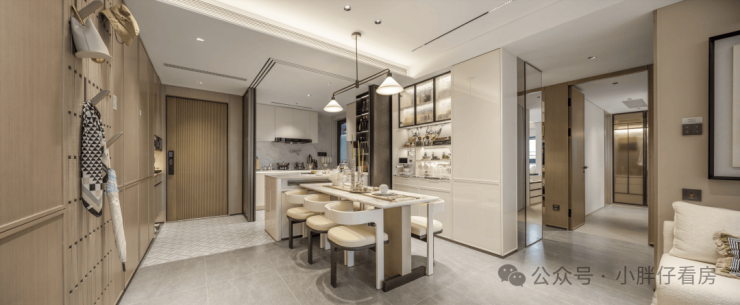 它的收纳亮点:钢琴键烤漆板,玄关处有一个八百库收纳,厨房扩容80%......800多万能买到这样的一个房子,哪怕是在市区买二手房也买不到这么多的赠送面积!