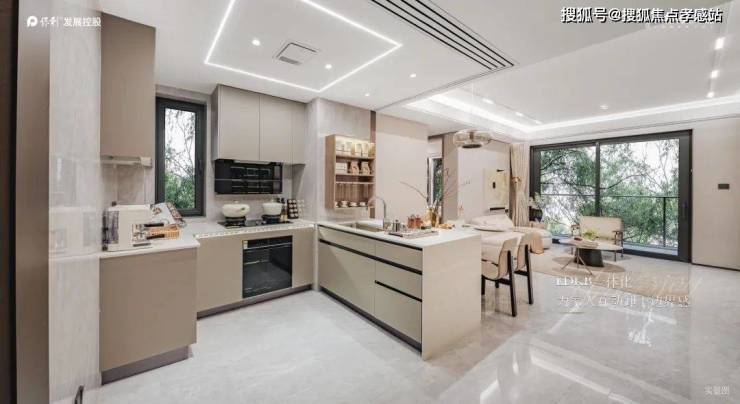 在餐厨空间也创新打造900mm立案的双面岛台收纳空间,相比常规同户型岛台操作台面增加了30公分,这在同级别产品中十分罕见;