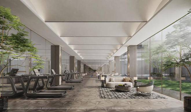 3、搭载大落地窗环模设计的健身房, 在欣赏窗外景色的同时,高端的健身器材,丰富的健身配套,都可以满足业主日常的健康所需。