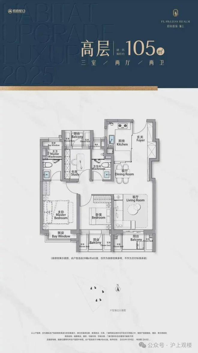 建面约105㎡3房,“三阳台”搭配花池的设计,直接性价比拉满,按照规定:三个阳台只算一半面积,花池不算面积,加上主卧+卫生间还带飘窗(主卧飘窗非承重结构),如此算下来,对购房者而言,日常可以实打实利用到的面积是远超市面上其他三房产品。