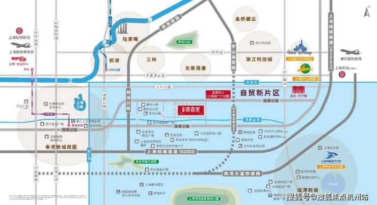 交通配套方面:项目受到临港自贸区和奉贤新城的双重辐射,北侧又有浦东张江科技城,未来将有大量产业人口导入。