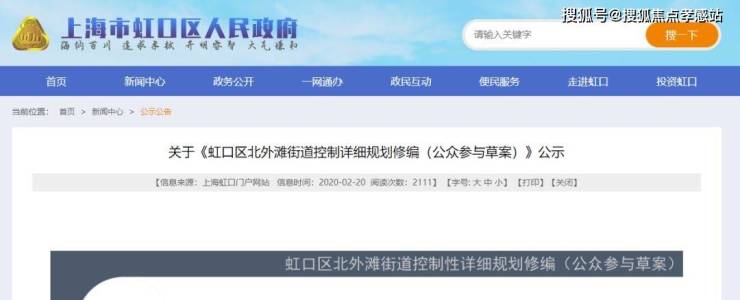 2020年2月20日公示了关于《虹口区北外滩街道控制详细规划修编(公示参与草案)》。