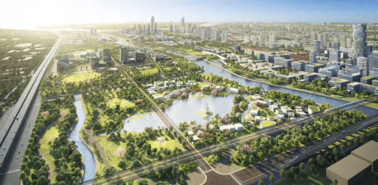 招商序隔了长江西路就是大吴淞先行启动区,十里画卷绿轴与新吴淞江并行,将都市生活的诗意具象化。