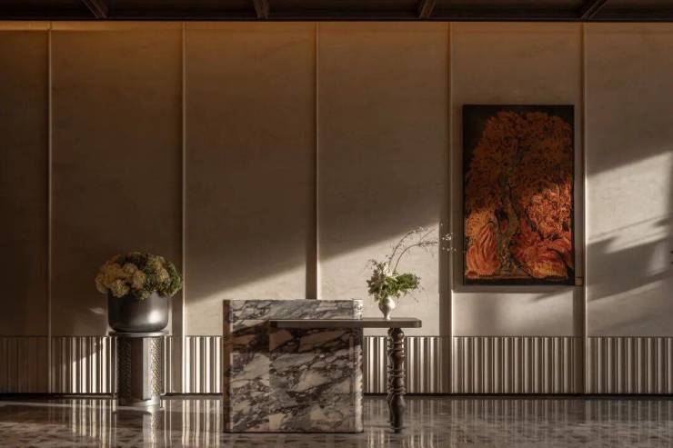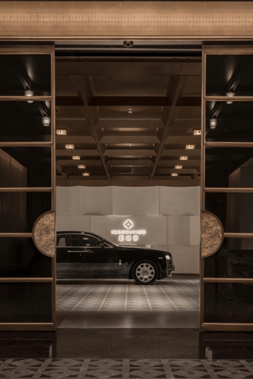 整个公区引入沉香米黄、透光云石、安哥拉黑、福鼎黑、橙皮红、宝格丽紫等近二十种全球奢石,宛如一座流动的奢石博物馆。