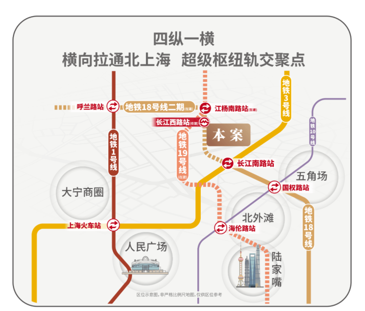 淞南板块咫尺江湾,背靠杨浦,是700万级别的新房中最临近市区的板块之一,地段优渥,且招商序距离18号线长江西路站仅约200米,真正的地铁上盖。