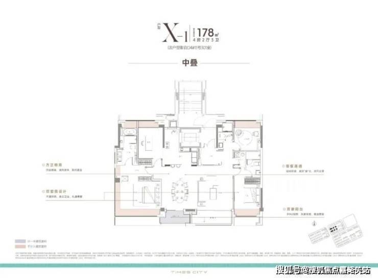 中平户型以四开间朝南的IMAX级采光面,打造出堪比市区豪宅的尺度感。4房4飘窗2阳台的设计,配合双套房布局,一共有三个套房,让每个家庭成员都享有独立私密空间。