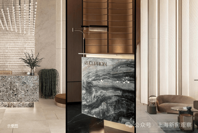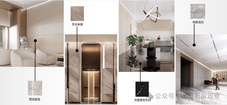 全新精筑 内奢于心的精工品质,建筑主体天然石材打造 品质出类拔萃;建筑立面为现代简约风格,干挂石材雕刻建筑经典,结合大曲率流线侧窗,从内部大堂到走廊公区,考究的用材与色彩搭配尽显海派摩登气质与豪宅质感奢华!