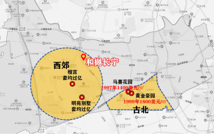商品房时代,西郊、古北两个国际社区的崛起,外销房热卖更是打造了上海较早的豪宅区。