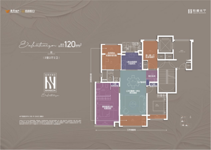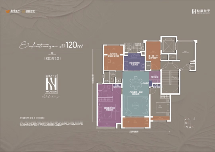 建面约120㎡户型整体采用了罕见的多阳台+贯通梯一梯一户设计!是双新政后内中环的首个!得房率也将高于双新政后同样楼层一梯一户的产品!单凭这两点,已然超前于绝大多数如今的产品!