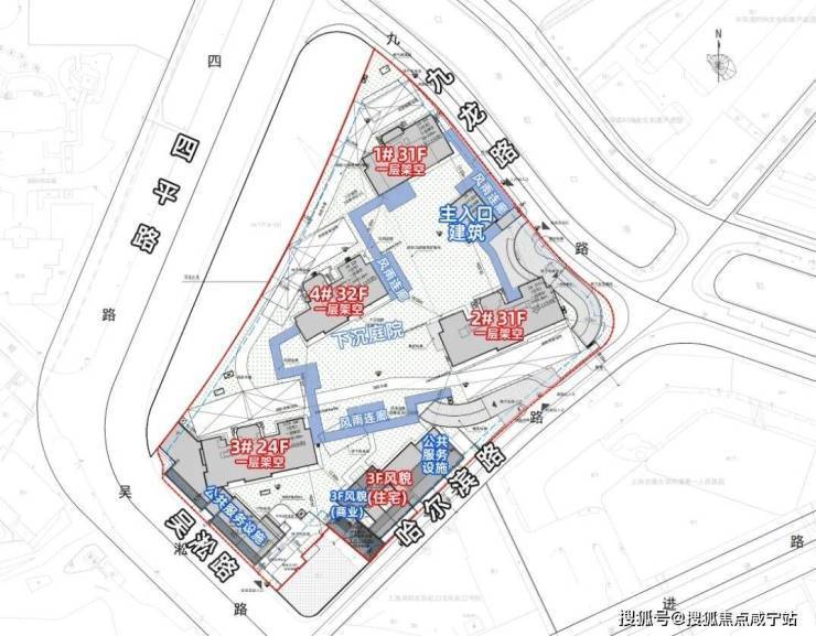 根据设计方案显示,项目拟建4幢24-31层高层住宅以及1幢总高3层的风貌建筑。