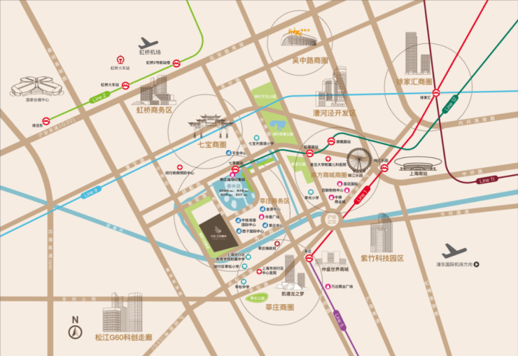 另外,项目附近还有七宝万科广场、宝龙城、中庚漫游城、百联南方购物中心等等高端商业环伺。