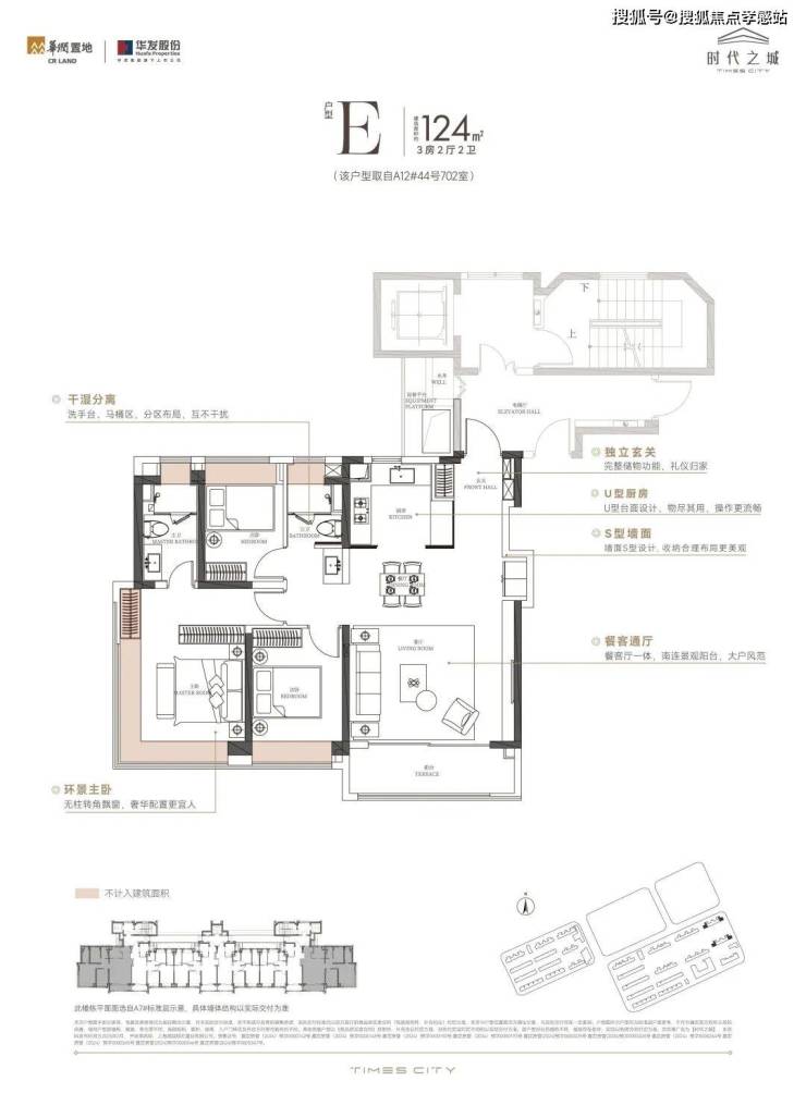 建面约104㎡3房2厅2卫,八批次总价约507-585万,经典动静分离户型,三开间朝南,独立玄关,U型厨房,预留分户S墙设计,可释放厨房冰箱空间!从最新开放的104户型样板间可以看出,项目对新品户型的收纳储藏空间做了全维升级,实用性更强。建面约124㎡3房2厅2卫,八批次总价约596-693万,同样是经典的动静分离户型,属于改善型3房,各空间居住舒适度更强,该户型均为边套,主卧为270°转角飘窗;