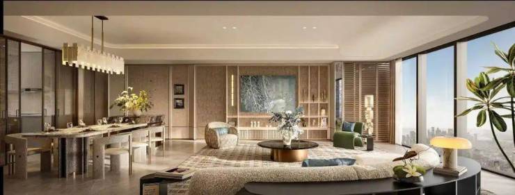 该户型户型不仅保留三开间朝南和餐客厅一体化的优势,更在尺度上大踏步进阶。