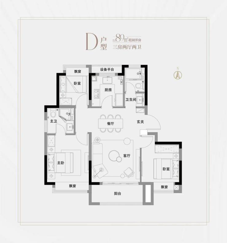 洋房建面约89㎡3房2厅2卫