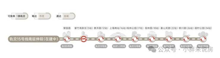 轨交网络:5号线、15号线南延伸段(在建中)、市域嘉闵线南延伸段(规划中)、沪乍杭高铁(规划中)及南枫线(在建中)