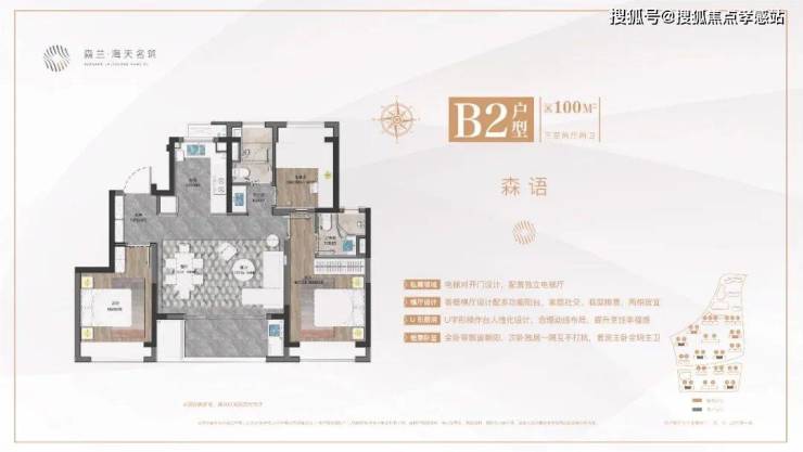 1、【森兰海天名筑】售楼处电话:400-885-5420✨✨建面约100㎡三房两厅两卫,市场主流户型。客餐横厅设计配多功能阳台,优势在于更大采光面和更好通风效果,把过道纳入到客厅和餐厅的空间中来,使整体空间得到更好的利用。
