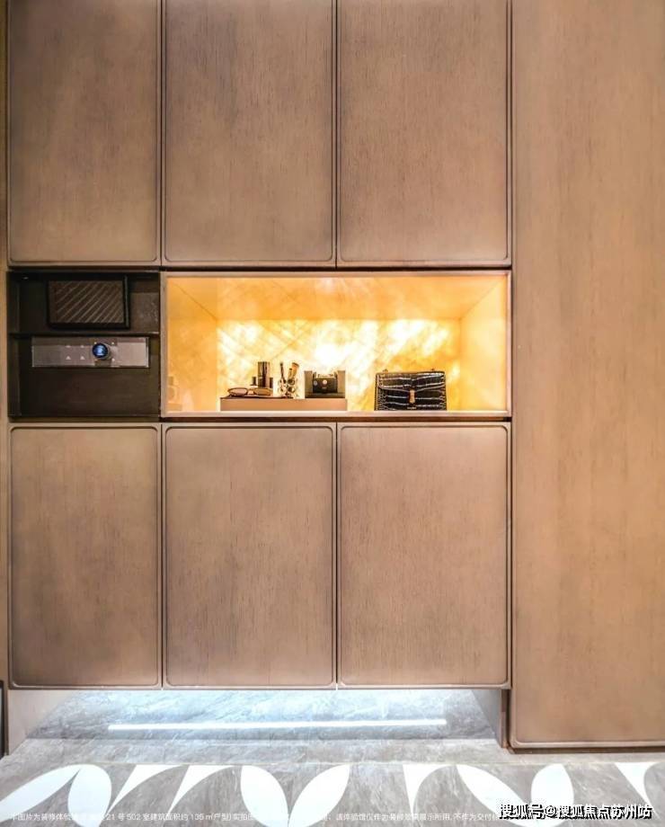 超配装修,“奢”装入户,大幅提升居住尊贵感!进门经典三段式玄关,中间采用凝脂玉玉石,石材下做灯带暗藏。鞋柜更配置鞋柜精灵,下方悬空设计,非常贴心。